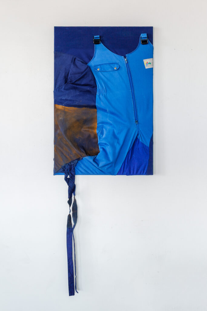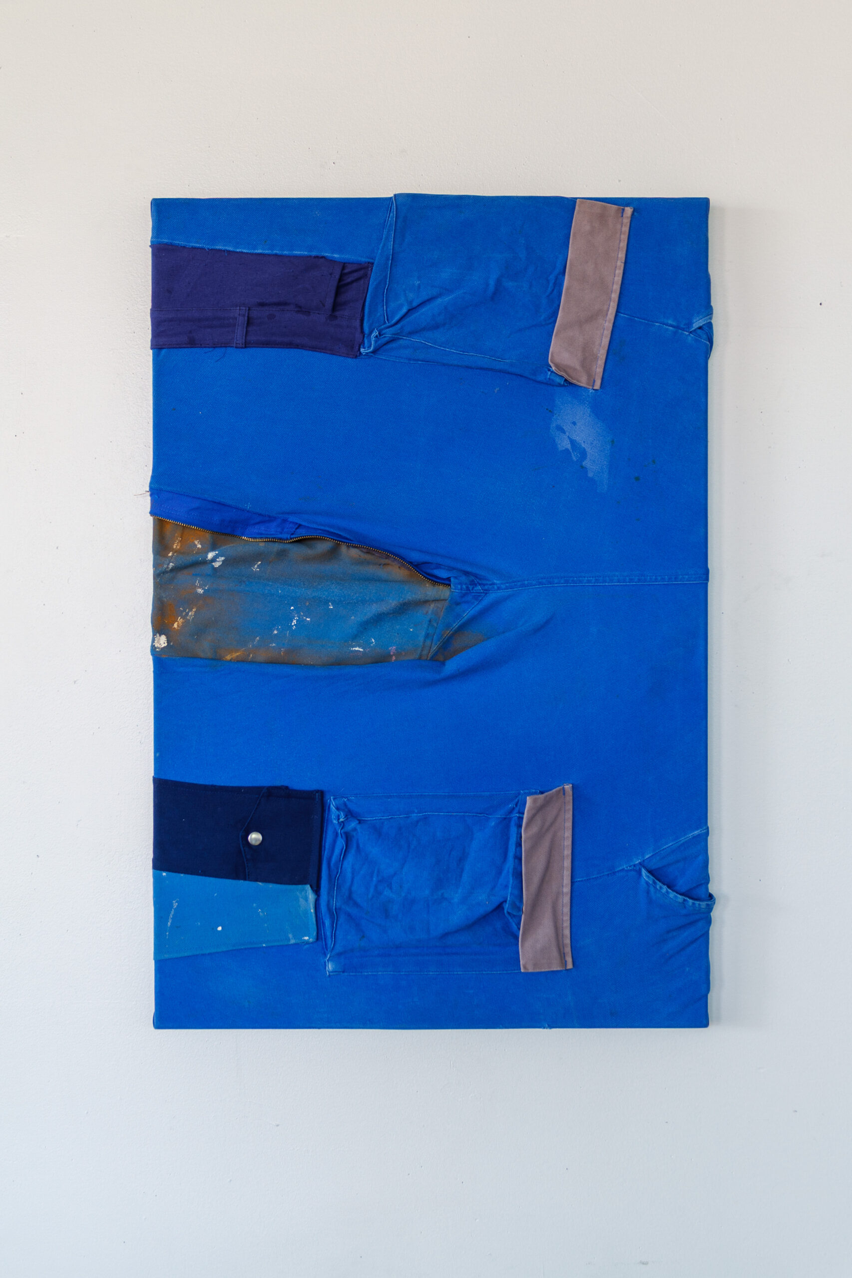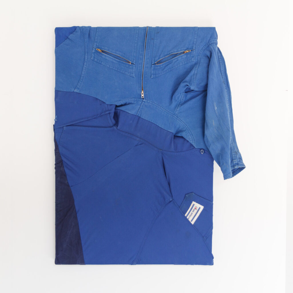 Blue Collar (Bleus de Travail) Series 2, 2022, 24″ x 36,” 60 cm x 90 cm, sewn used work wear textiles.
