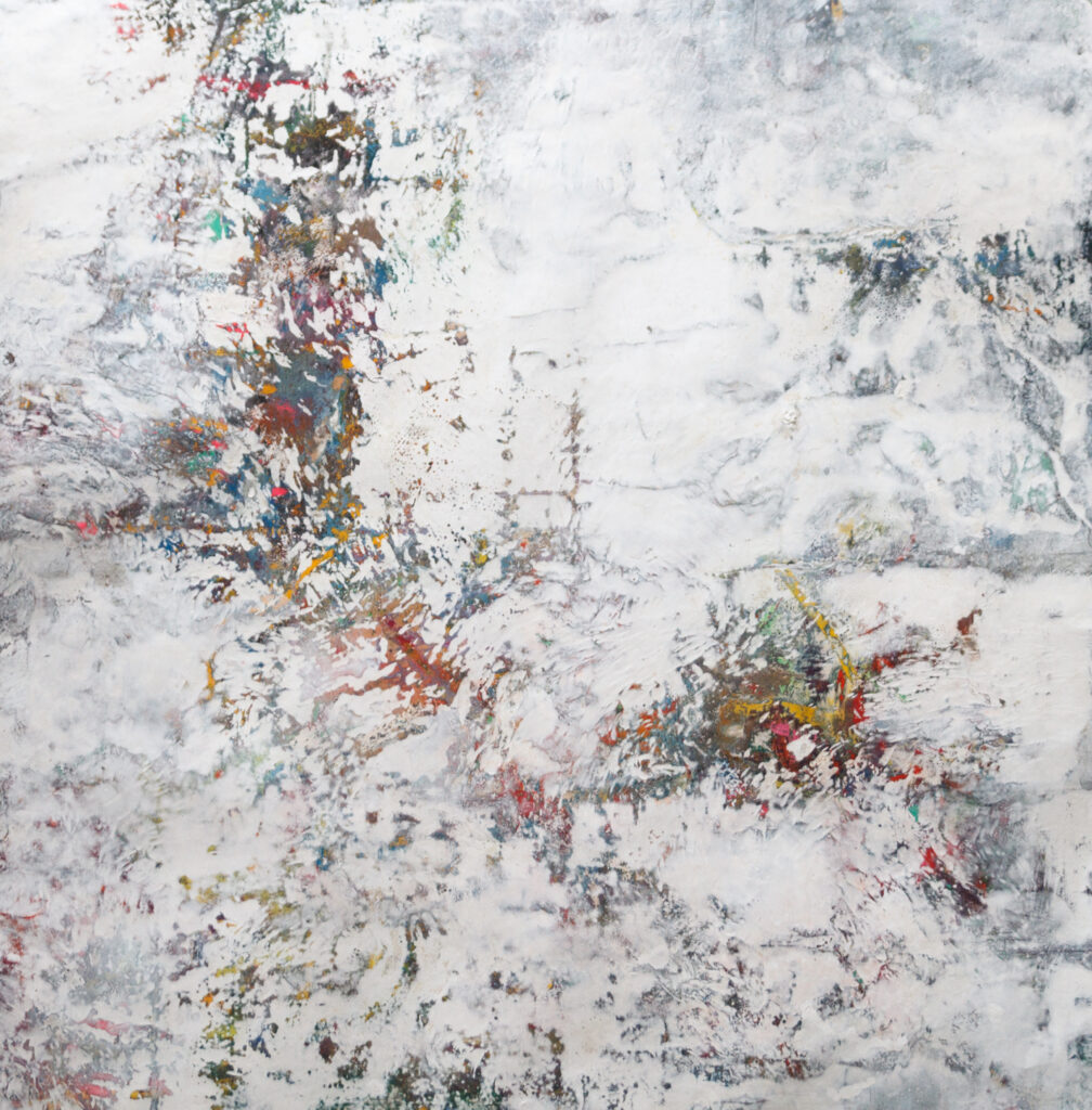 Whiteout no. 3, 2022, 210 cm x 197 cm, acrylic and mixed media on sanded linen.