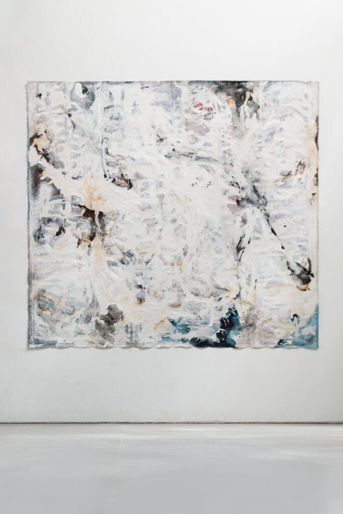 Whiteout no. 2, 2021, 208 x 211 cm (unstretched), mixed media on linen.